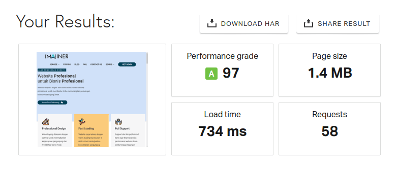Untuk mengecek kecepatan website, Anda dapat menggunakan tools dari Web Page Test atau Pingdom.