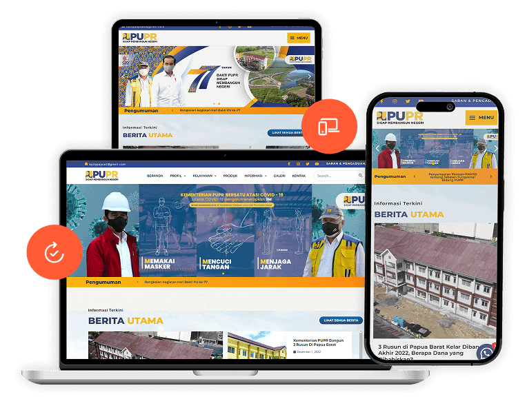 Website didesain untuk 3 tipe perangkat berbeda: mobile, tablet, dan desktop, sehingga tampilan website akan selalu optimal kapan pun diakses.