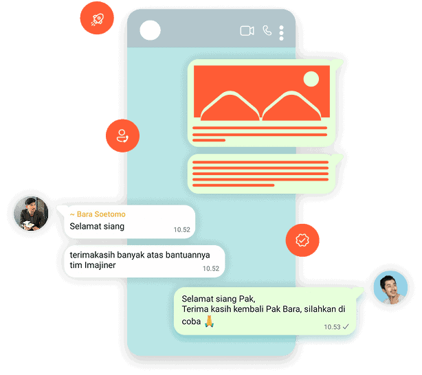 Imajiner akan membantu Anda mulai dari perencanaan, penyusunan materi, desain, development, hingga maintenance website. Layanan kami bersifat opsional dan tidak mengikat, silakan berdiskusi dengan kami untuk menyesuaikan kebutuhan Anda.